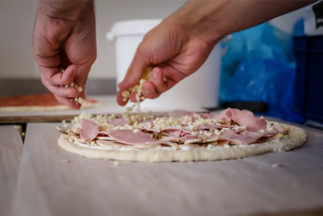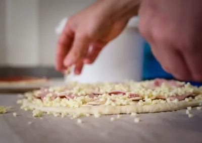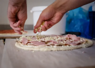 Chez Gallopains, la pizza n’est pas un simple produit de snacking : c’est une véritable spécialité artisanale. Chaque jour, notre pizzaïolo professionnel prépare une pâte maison, pétrie et levée sur place, pour garantir une base moelleuse à l’intérieur et croustillante à l’extérieur.